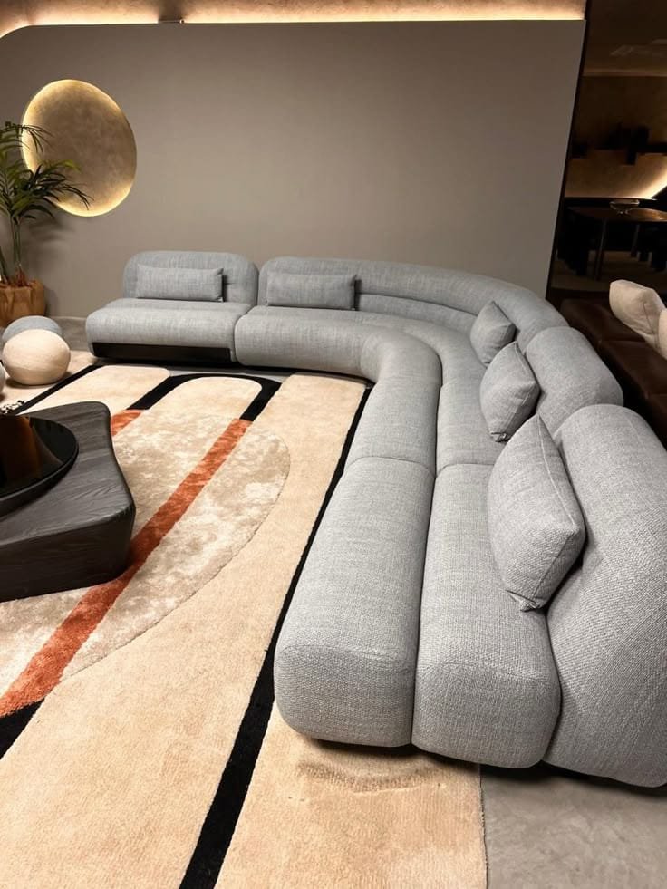 A large curved grey sectional offering modern comfort and bold design.