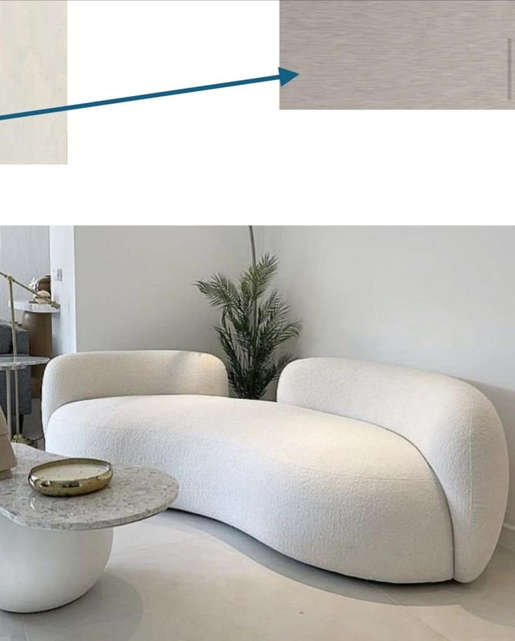 A modern curved ivory boucle sofa with soft lines and timeless elegance.