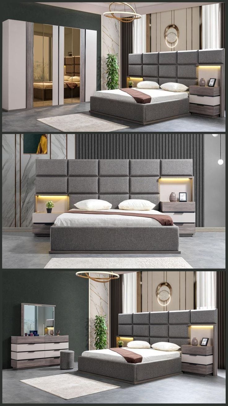 A contemporary bedroom set crafted with precision using premium beech wood and high-quality plywood specially manufactured for lasting durability. The soft upholstered bed design, with integrated lighting and sleek grey tones, brings together modern aesthetics and comfort. Finished with eco-friendly paints that ensure both elegance and sustainability.