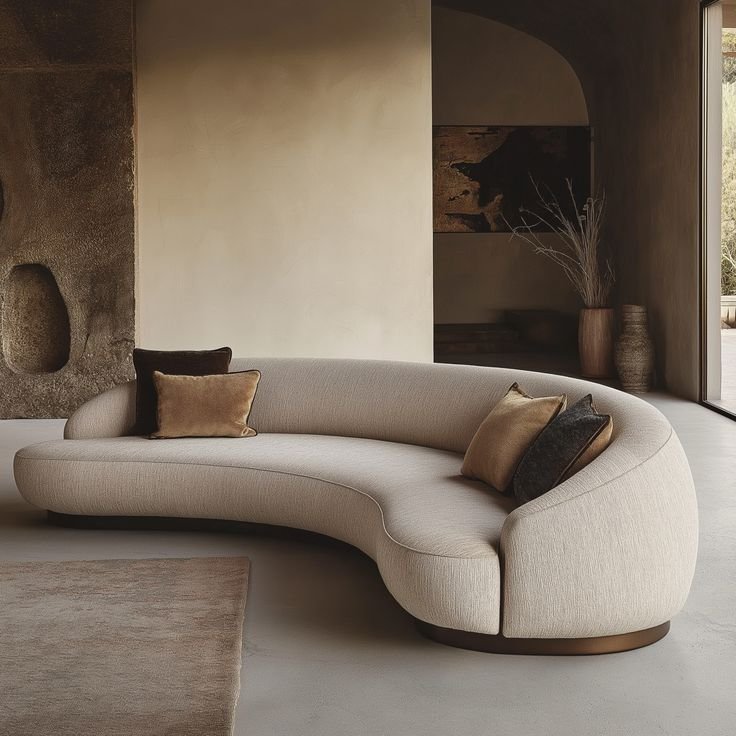 A refined curved sectional combining modern elegance with inviting comfort.